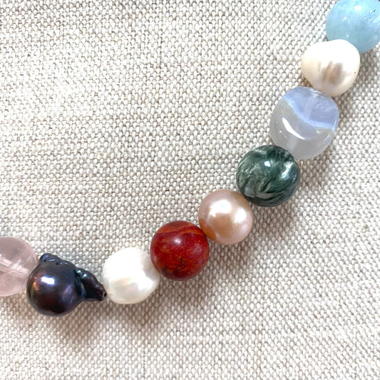 Collier en argent 925 avec plusieurs pierres semi-précieuses et perles