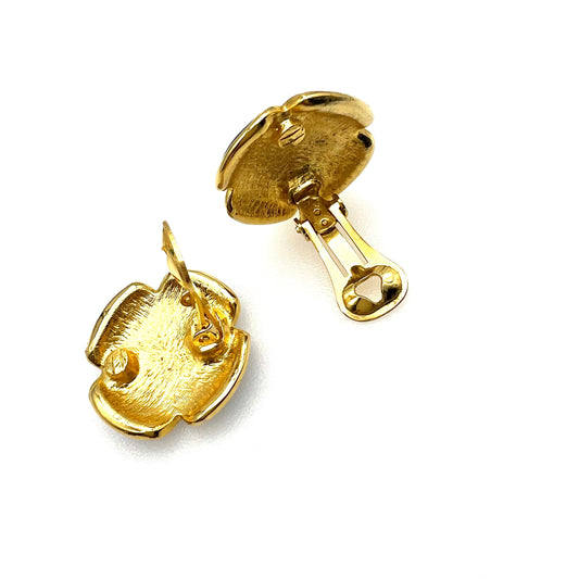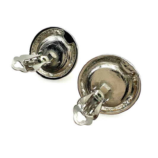 Boucles d'oreilles à clip en forme de croix ronde plaquée or et émail noir non signées