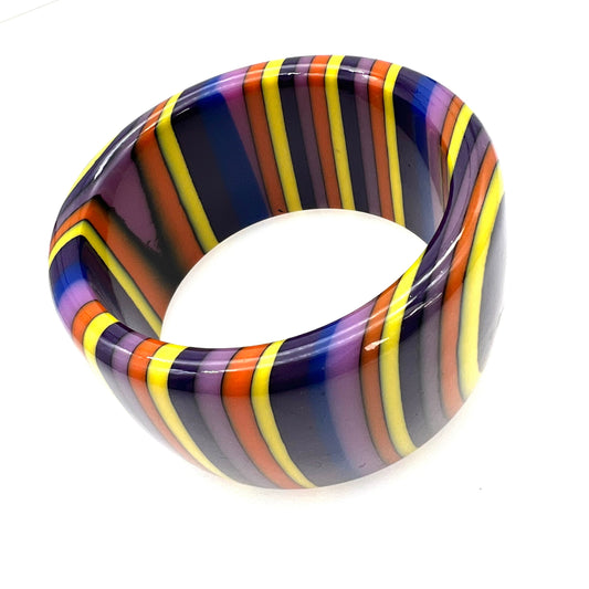 Bracelet Pop Art multicolore rayé en résine plastique non signé