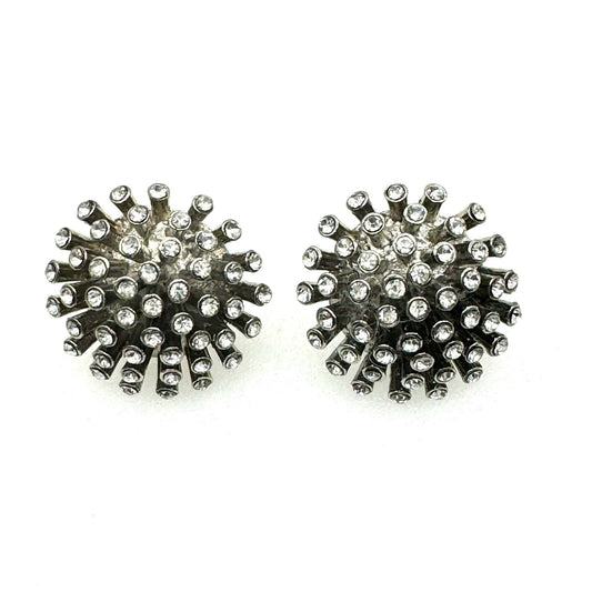 Vintage 1980's Sputnik Rhinestone Pierced Earrings with Brand New 925 Silver Butterfly Backs