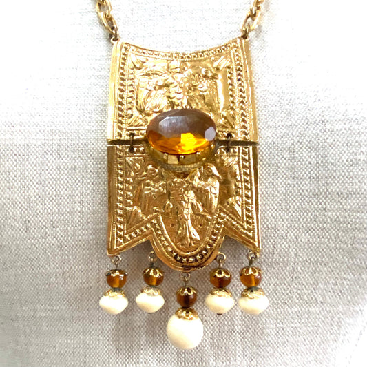 Collier de déclaration de renaissance étrusque byzantine non signé avec chaîne intégrale probablement par Alexis Kirk ou Judith Leiber