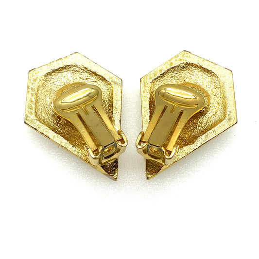 Boucles d'oreilles à clip en émail crème et cristal en forme de V de style Art déco non signées