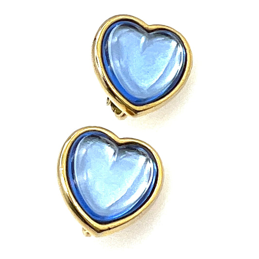Clip de coeur en verre bleu non signé sur les boucles d’oreilles