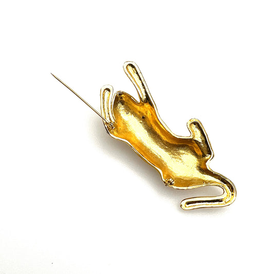 Broche tigre en strass en émail doré non signée