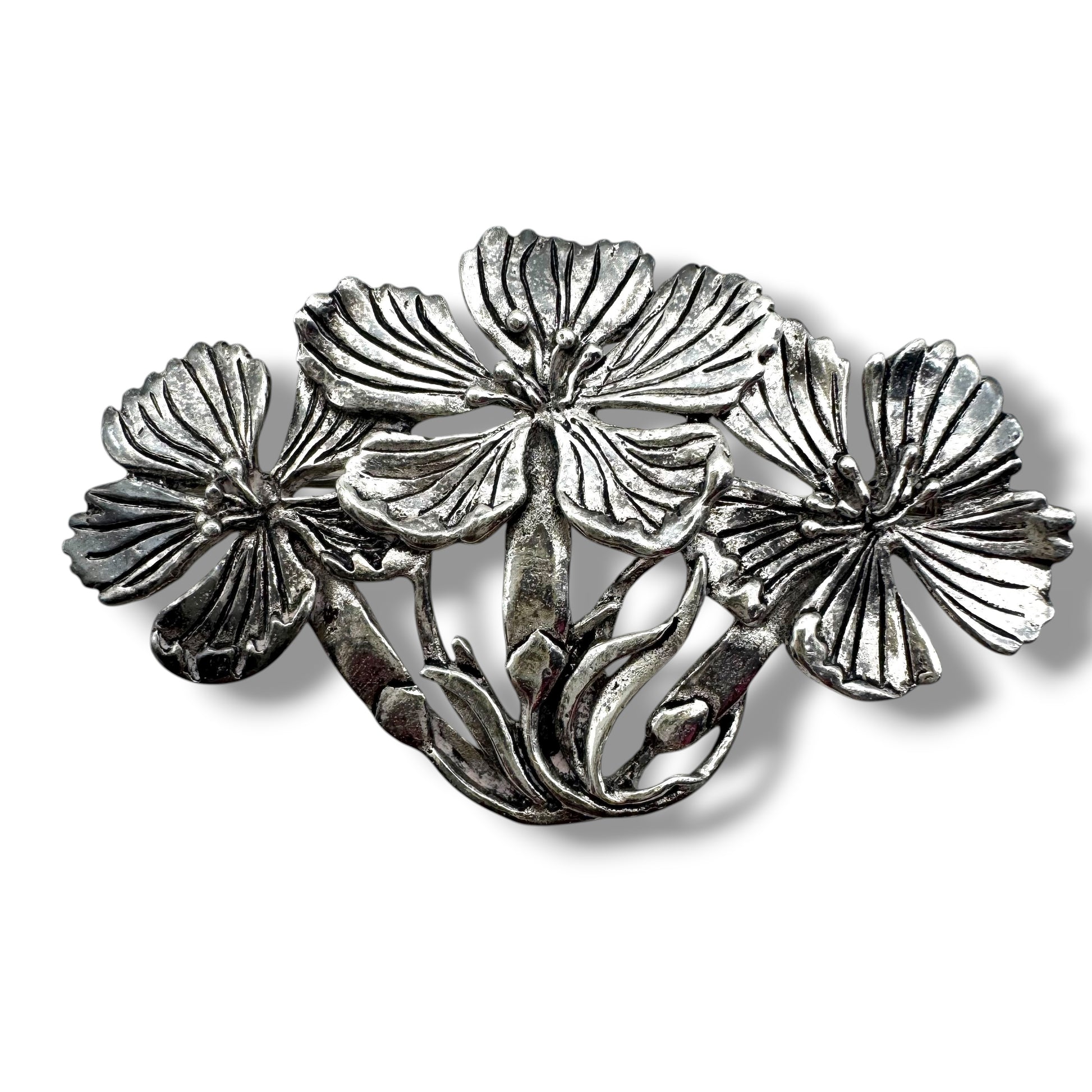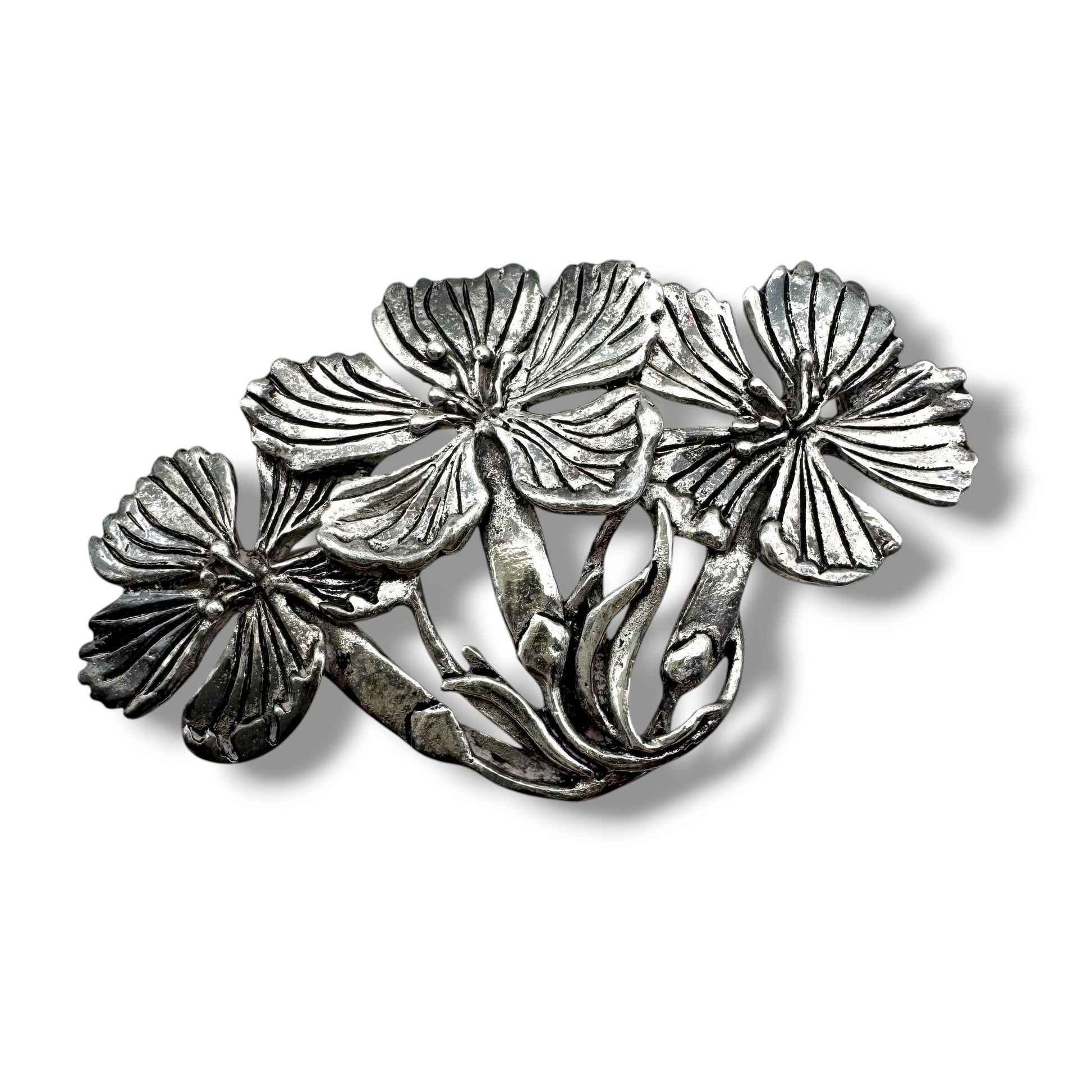 MASJ 1992 Silver Plated Pewter Floral Trio Brooch
