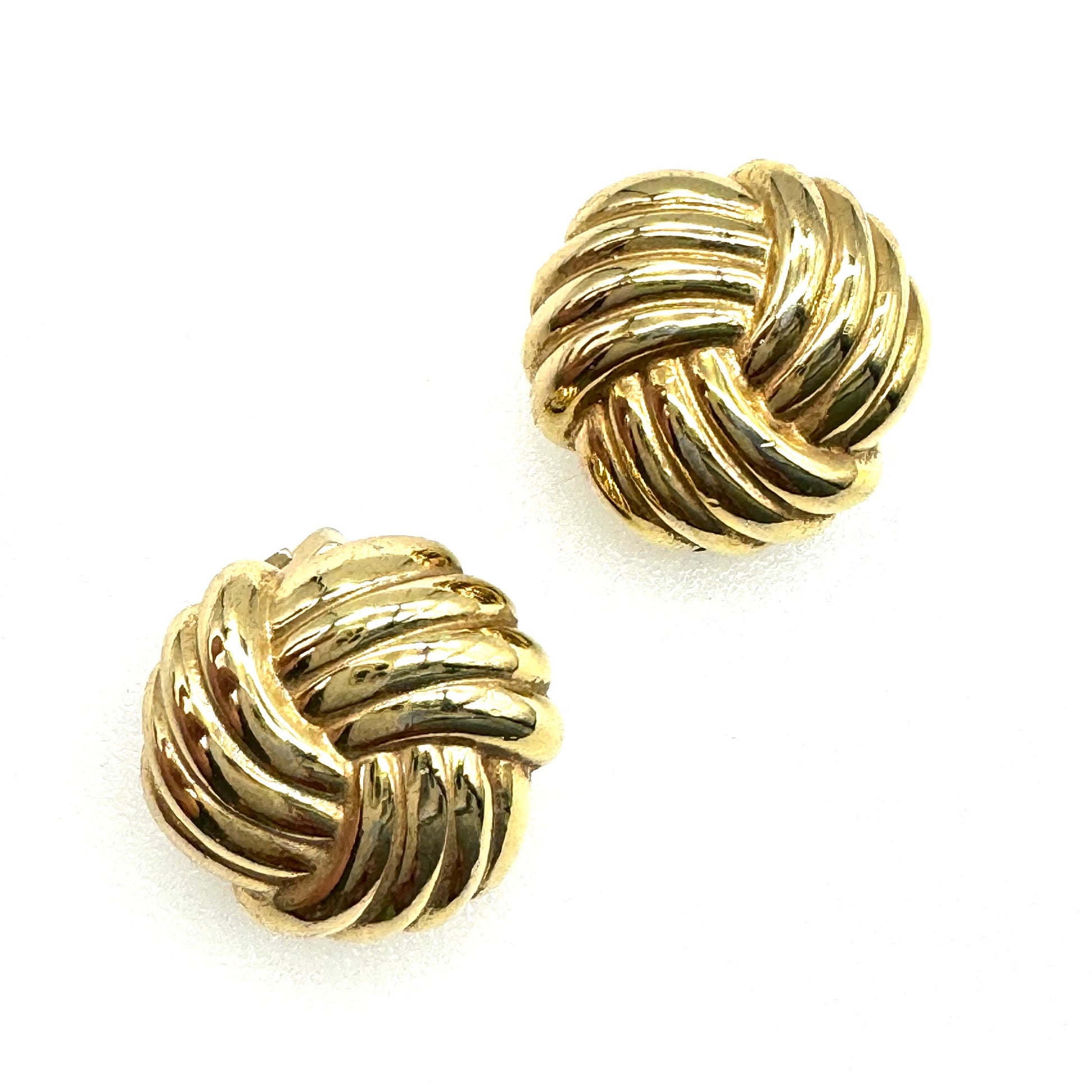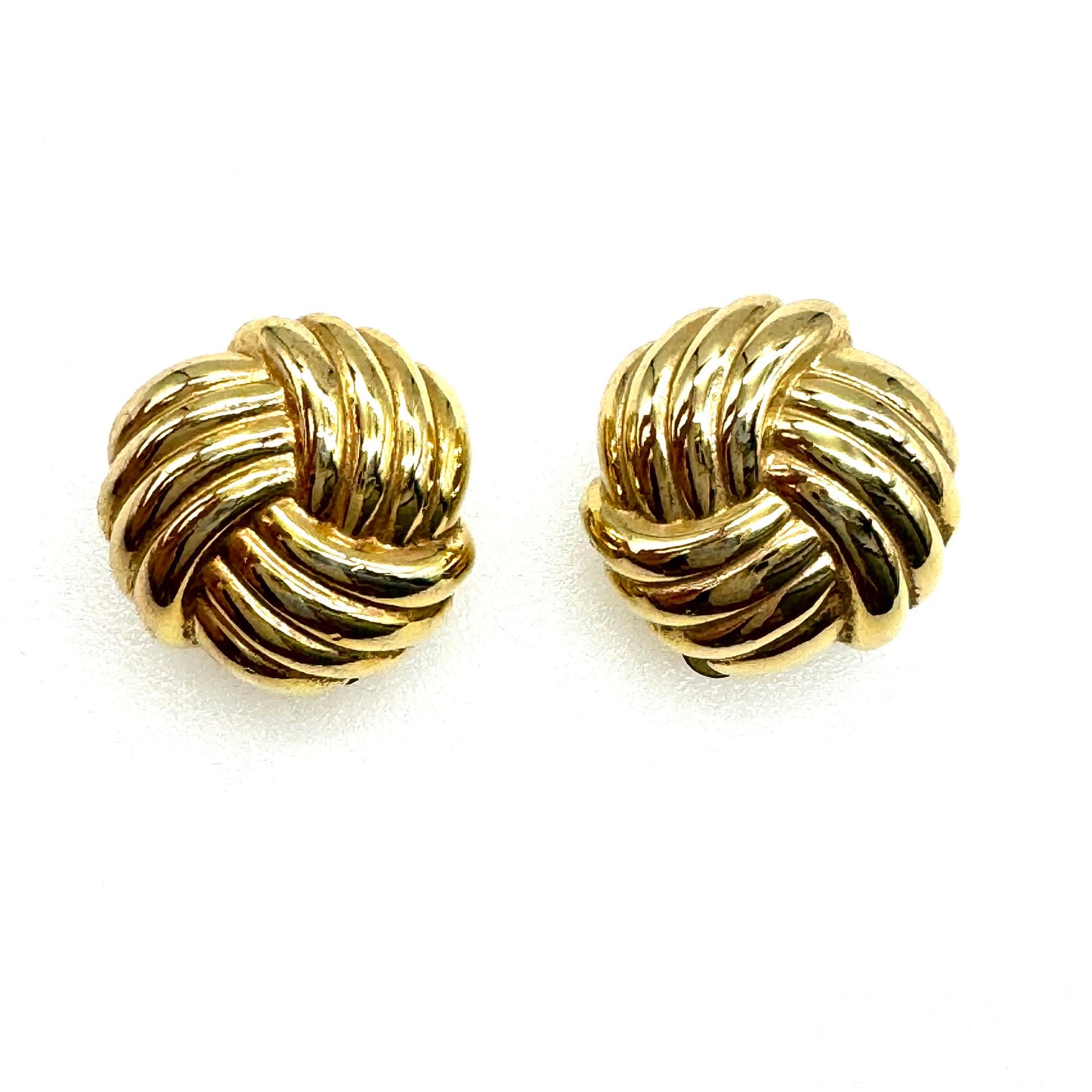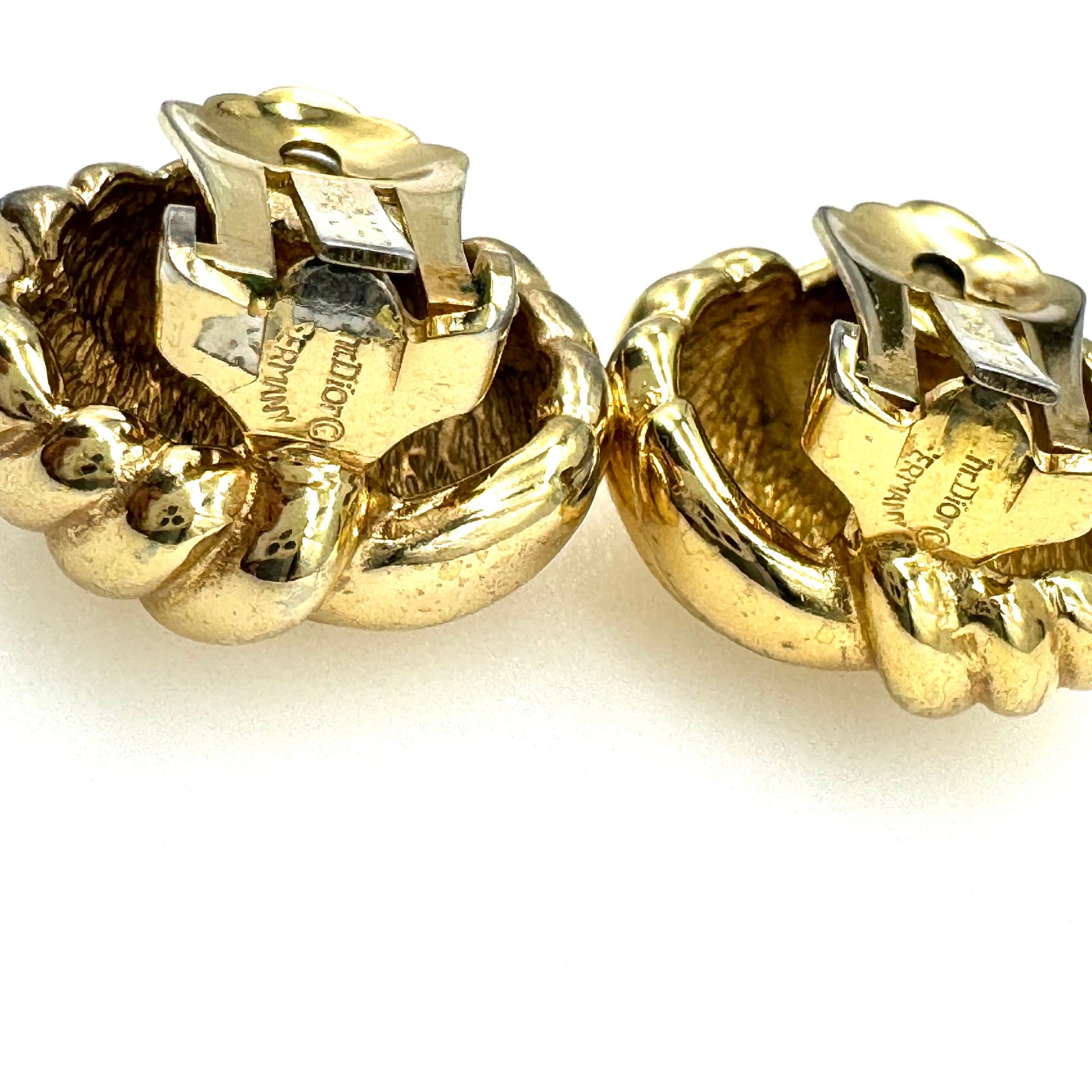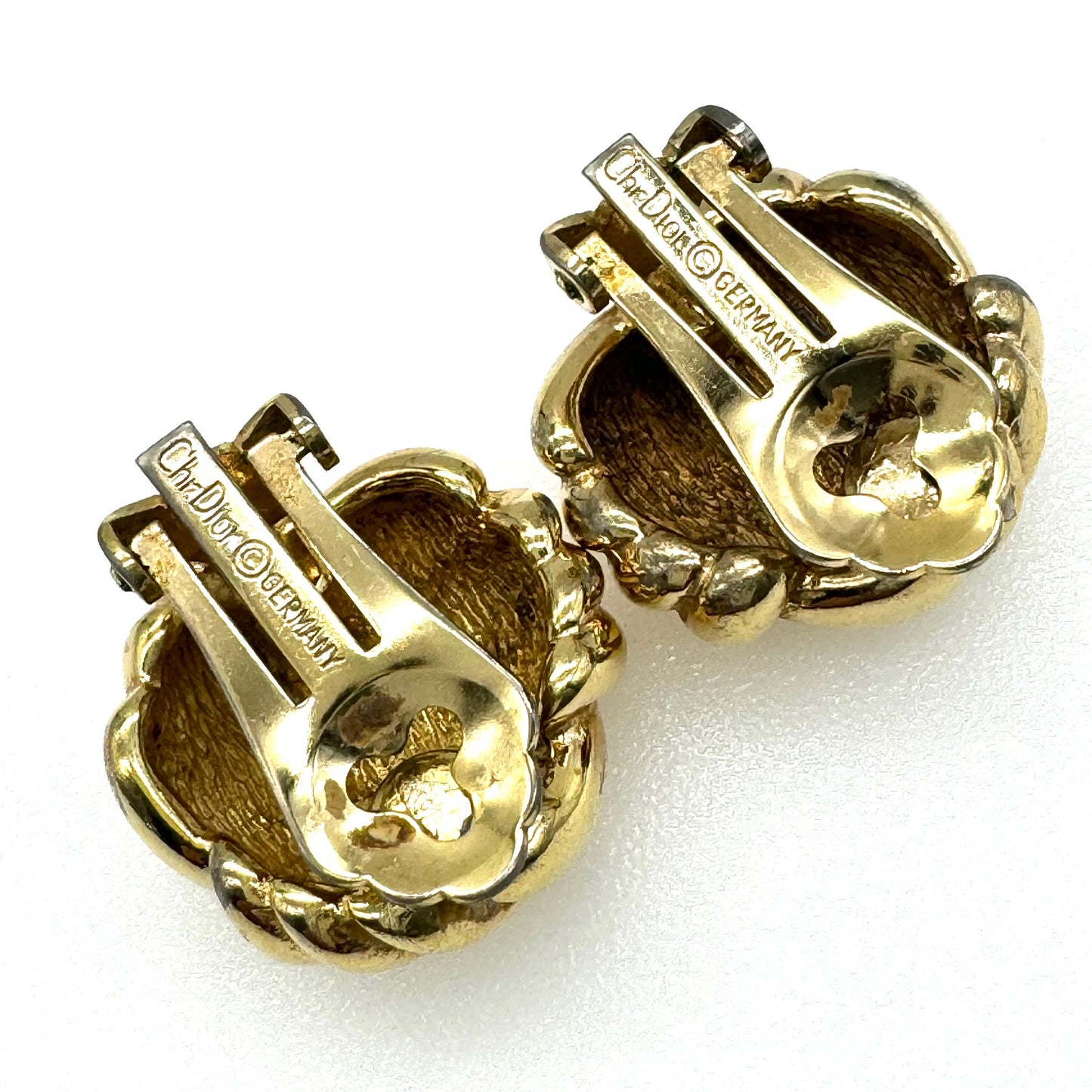 Christian Dior Germany Ribbed Triple Love Knot Clip On Earrings featuring gold plated ribbed triple love knot clip on earrings measuring 2cm diameter and weighing 15.9g. They are both signed 'Chr.Dior @GERMANY' on the back of the clips, as well as on the base 'Chr.Dior@' with 'GERMANY' below, where there is little wear to the gold plating, . Classic and timeless clip on earrings by Christian Dior.