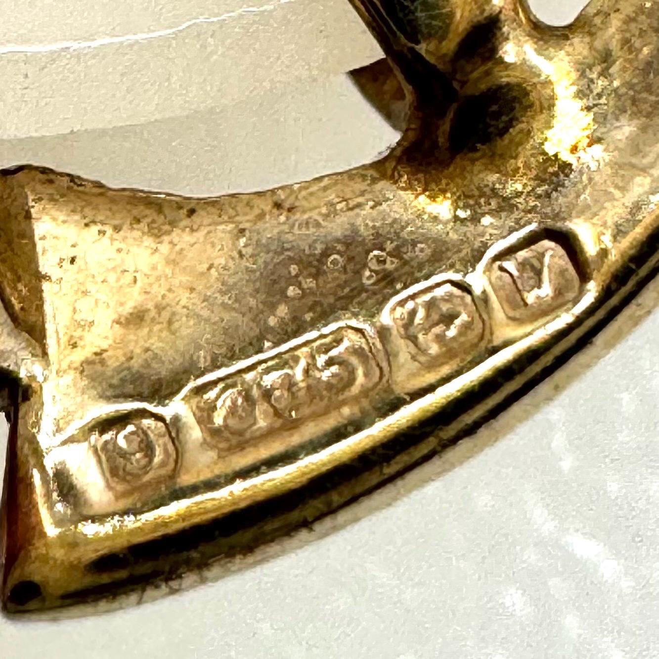 The design has a mid-century feel, so I would be happy to suggest that this piece was assayed in 1946. The brooch has a C clasp and it measures 3.2cm high and 2.5cm at its widest point and it weighs 4.1g.