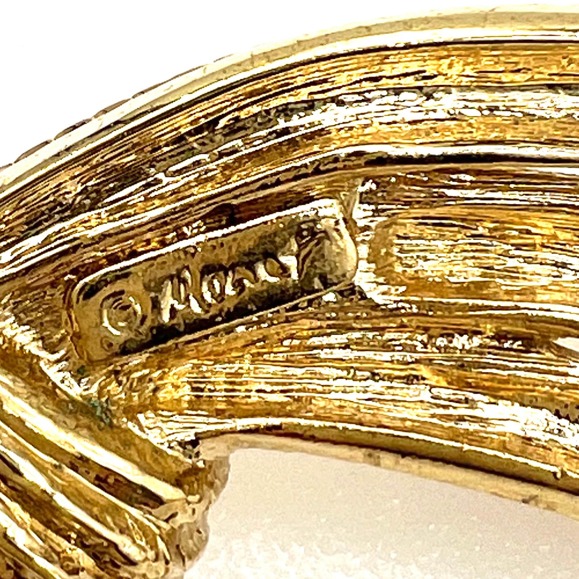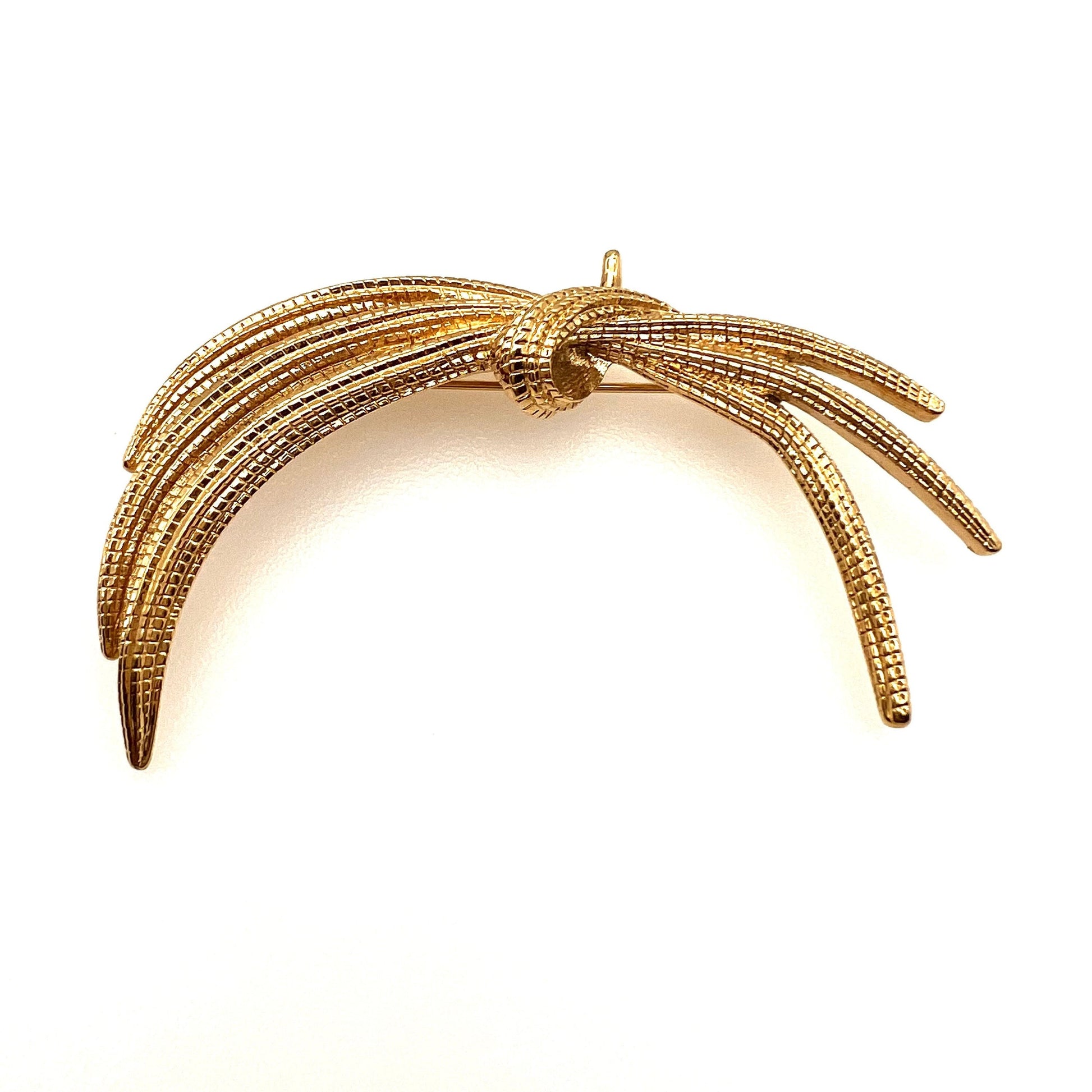Monet Modernist Wheat Spray Brooch featuring a simple modern wheat spray design and measuring 7.3cm long and 5cm at its widest point and it weighs 18.7g. It has a rollover clasp and it is signed '© Monet' in script on a rectangular cartouche.